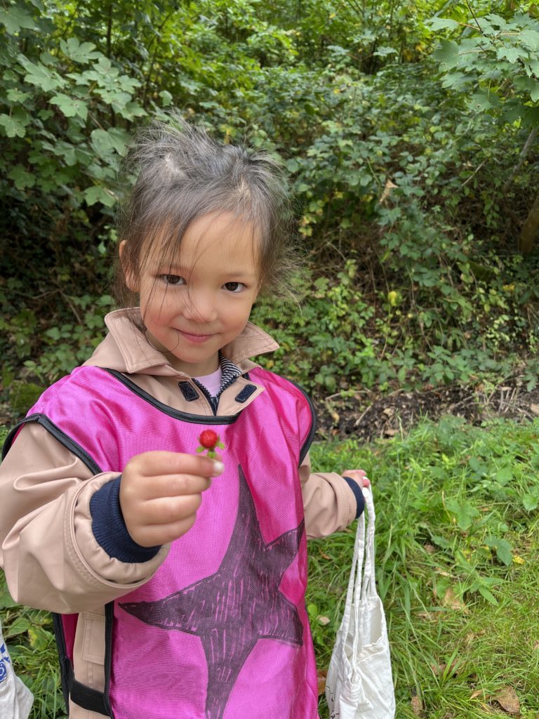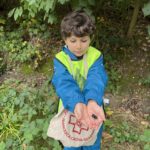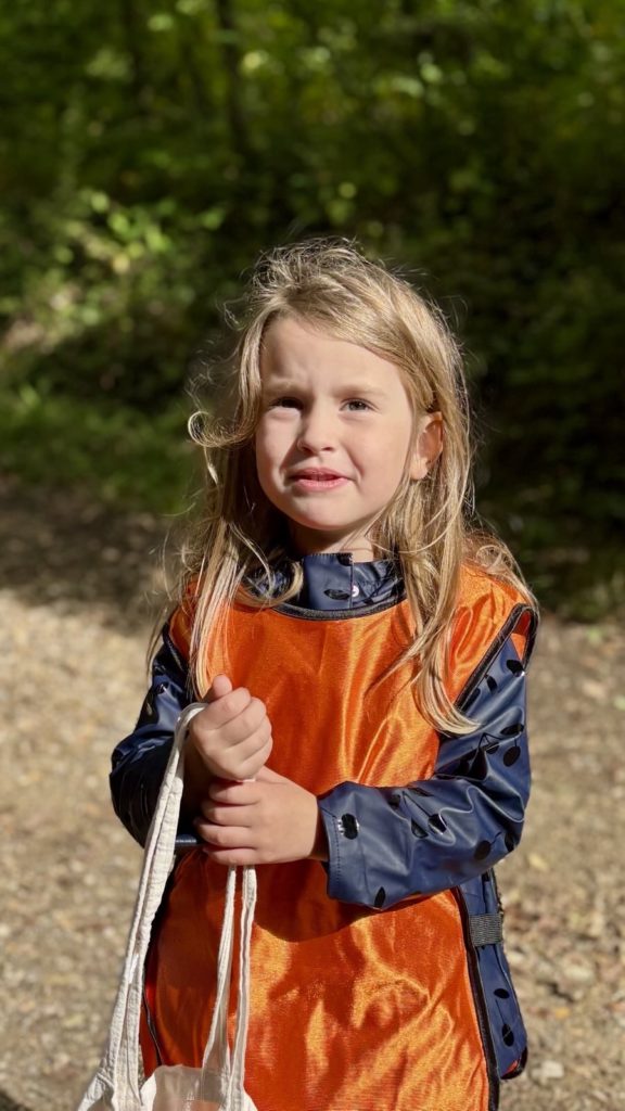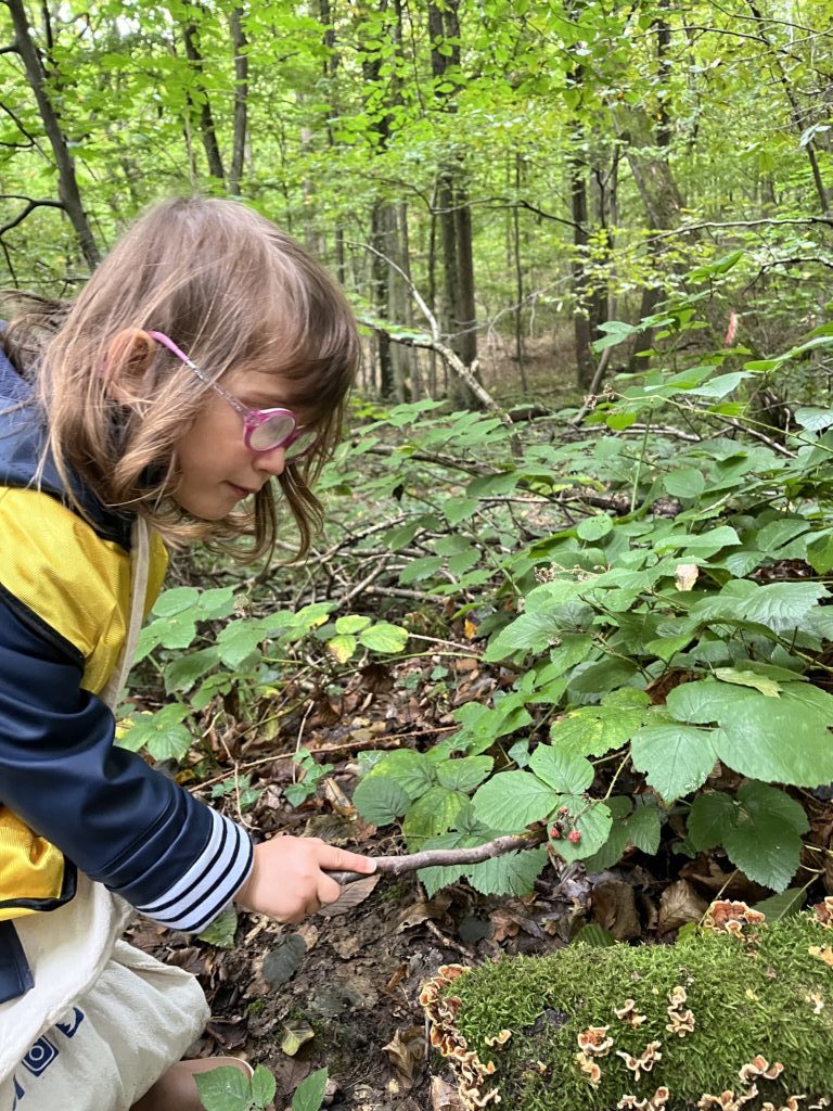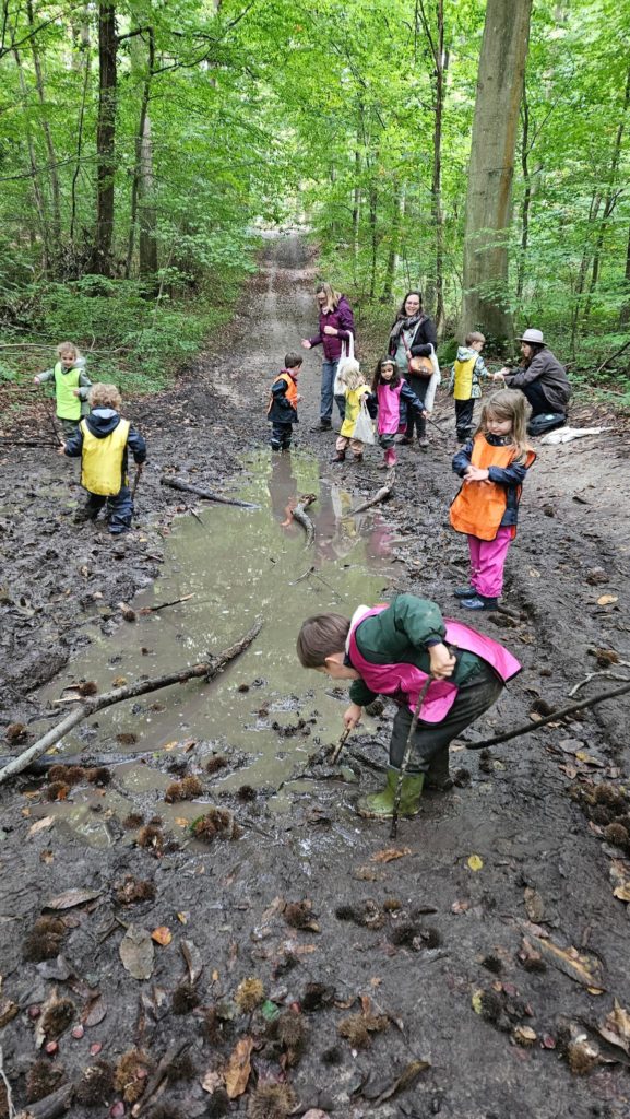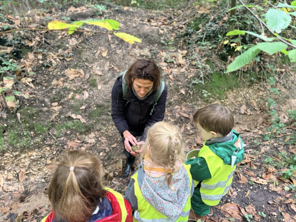 On découvre des petites bêtes, larves, vers de terre, on trouve pleeeeeeiiiin de champignons mais dans le doute on n’y touche pas !! Les châtaignes sont magnifiques !! Les feuilles sont encore bien vertes, on est à la porte d’entrée de l’automne !