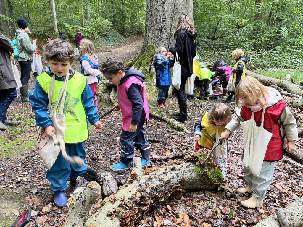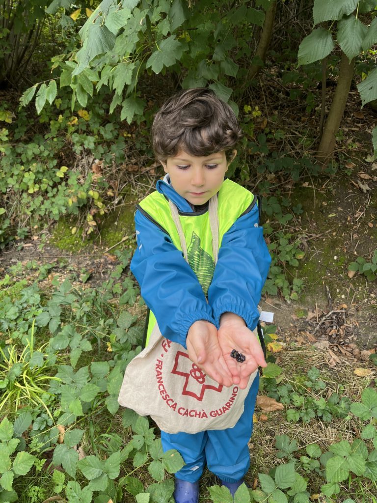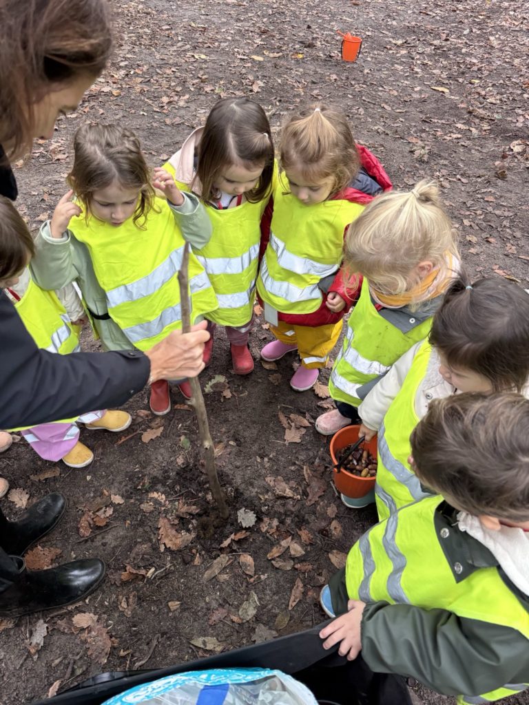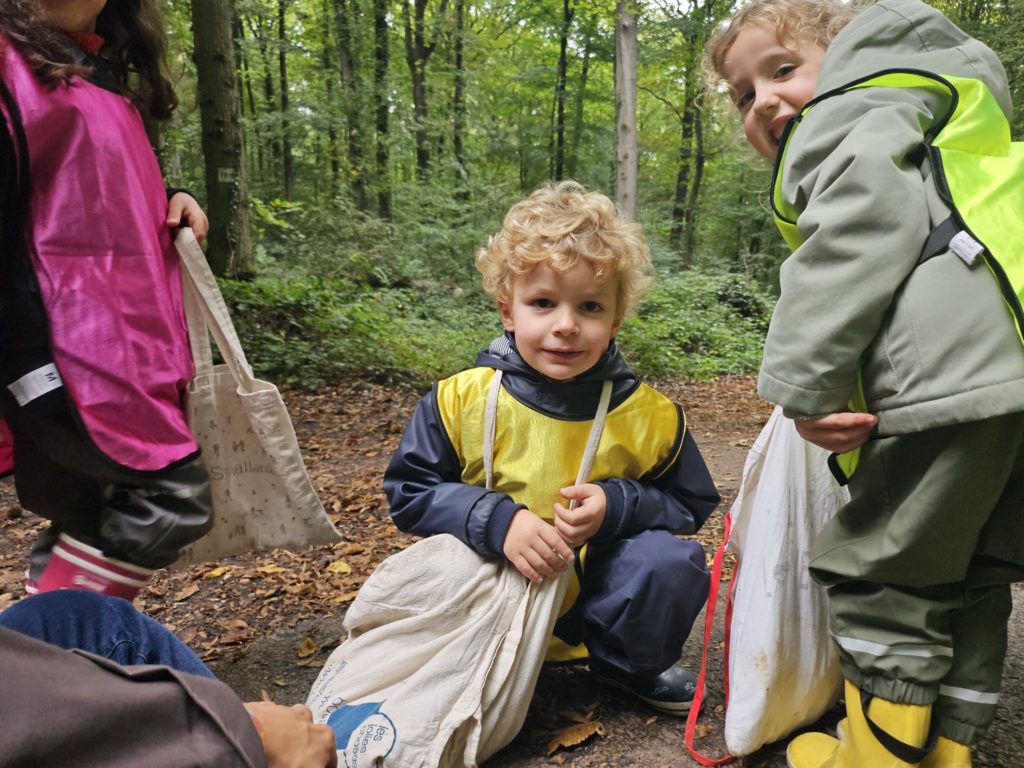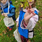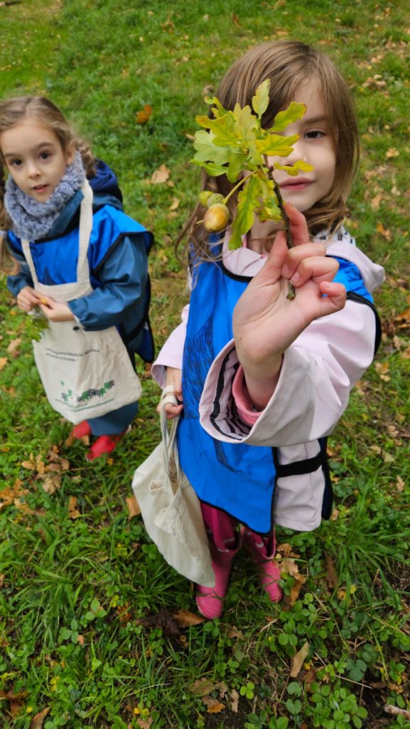 Chez les plus grands, chacun dispose d’un totebag pour récolter les trésors de l’automne : bogues, châtaignes, glands, feuilles, bâtons… Nous nous en servirons pour réaliser un mandala à notre retour lundi prochain !