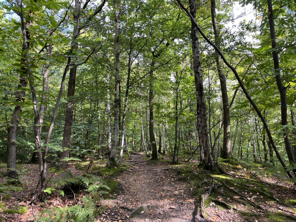 Nous nous enfonçons dans les bois, les plus petits d’un côté et les plus grands d’un autre, chaque groupe tirant sa charrette – très pratique pour transporter nos petites affaires !