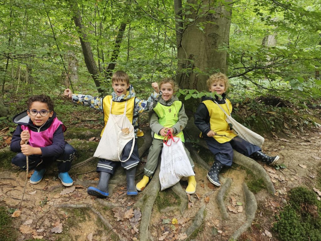 Ce vendredi après-midi, avec tous les enfants de l’école et des parents accompagnateurs, nous prenons le car direction la forêt de Fausses Reposes à Ville d’Avray pour notre première après-midi dans les bois !
